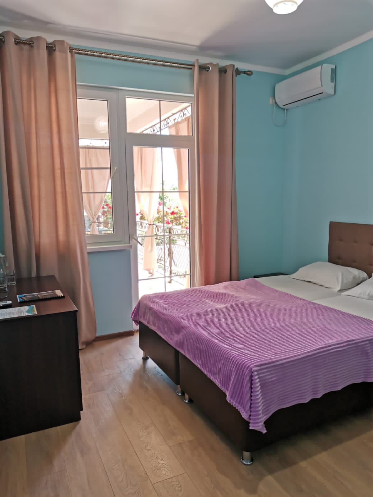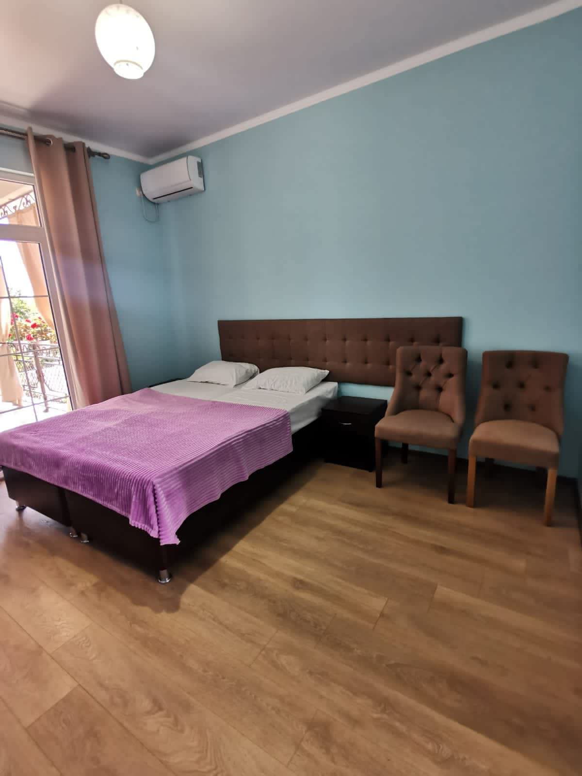 Площадь номера - 20 кв.м. 2 осн. места. 1 доп. место. Мебель: вешалка, зеркало, кровати односпальные /одна двуспальная кровать, прикроватные тумбочки, стол, стул, шкаф. Оборудование: сплит-система, телевизор, холодильник. Санузел. Сервис: Wi-Fi бесплатно, смена полотенец, смена постельного белья, уборка номера. Терраса.