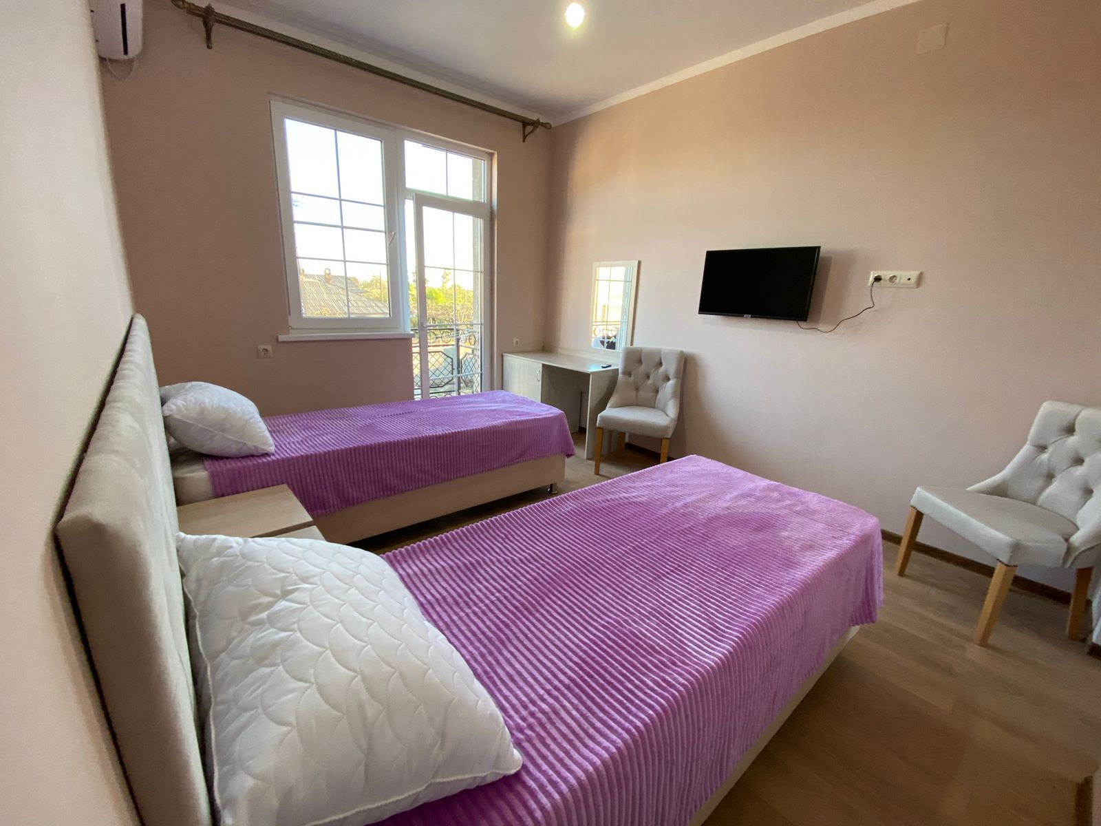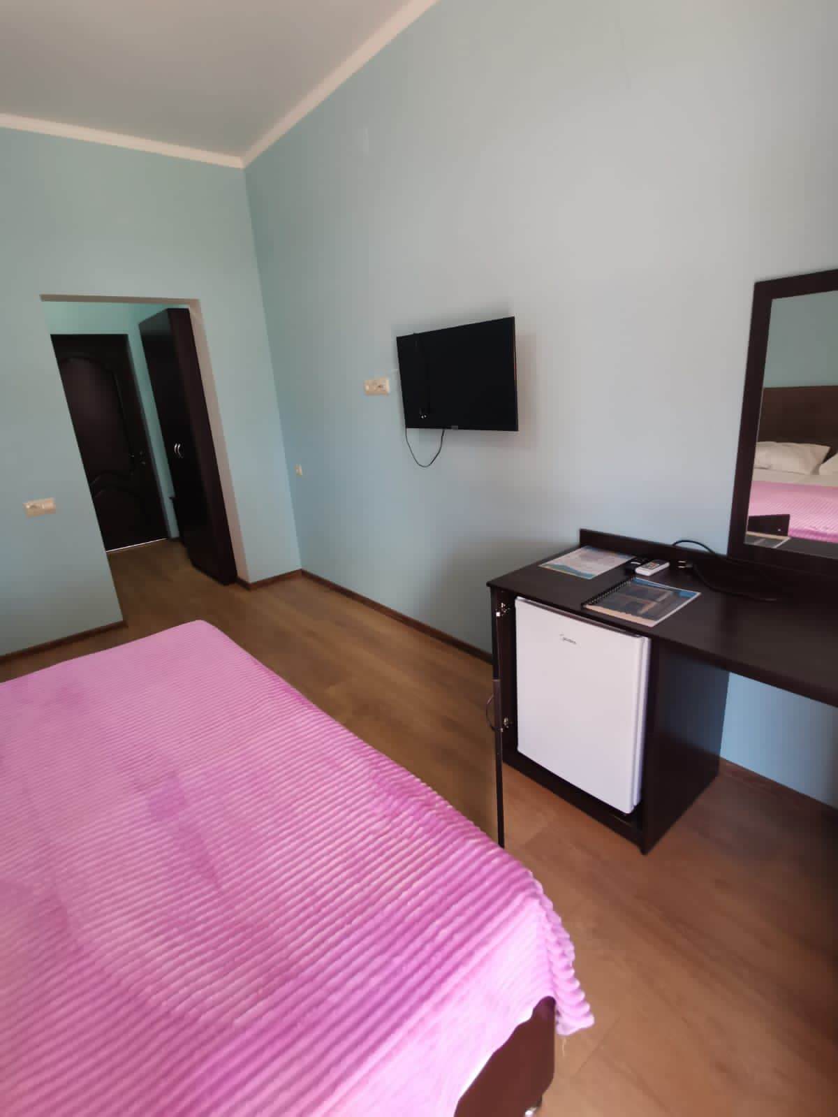Площадь номера - 20 кв.м. 2 осн. места. 1 доп. место. Балкон. Мебель: вешалка, зеркало, кровати односпальные /одна двуспальная кровать, прикроватные тумбочки, стол, стул, шкаф. Оборудование: сплит-система, телевизор, холодильник. Санузел. Сервис: Wi-Fi бесплатно, смена полотенец, смена постельного белья, уборка номера.